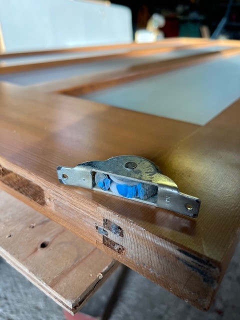 明り取りのガラスが重く戸車が破損し、力いっぱい引っ張らないと動かすことが困難になっていました。